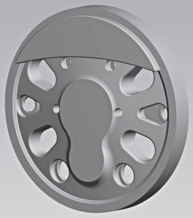 In the photo below you can see the amount of 'relief' there actually is on the driver center face. If you look closely you can also see the hollow core detail of the driver center in the smaller size lightening holes, the larger holes were not designed with the hollow core exposed on the prototype. The driver centers are produced using a specially formulated brass alloy to provide for strength as well as detail fidelity.