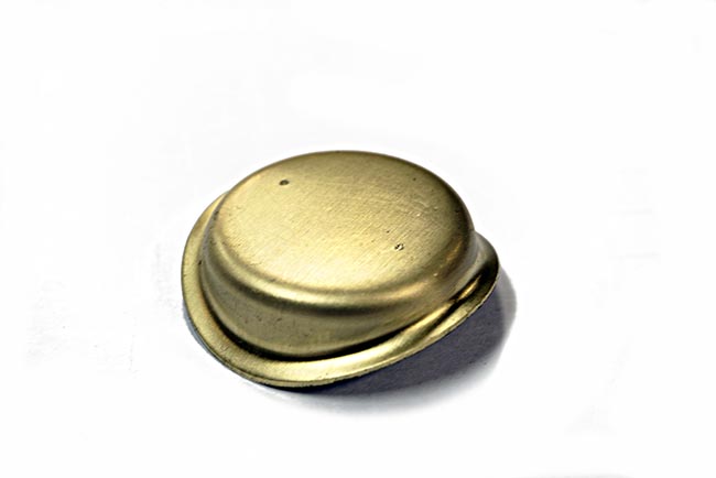 The 'raw' pressing for a steam dome is shown below. You can see two recessed fastener details in the top surface, they are extremely small details that are never the less critical for a correct representation of the prototype locomotive. The fastener detail is created in a separate process in this case.